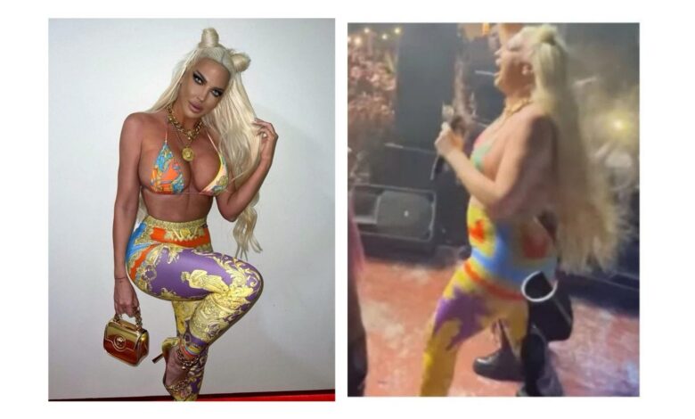 Pjevačica je na svom Instagramu podijelila nekoliko fotografija koje su snimljene prije samog nastupa i na njima je pjevačica savršeno istakla bujne grudi i ravan stomak, a snimci fanova s nastupa pokazali su nešto drugačiju realnost.