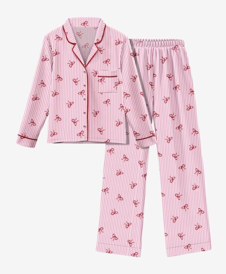 Crveno-ružičasta pidžama s motivom mašne sastoji se od hlača i košulje s ovratnikom, a kopča se preslatkim ružičastim gumbima. Prema opisu na službenoj stranici, mekana je na dodir i topla, a cijena joj iznosi 15 eura.
