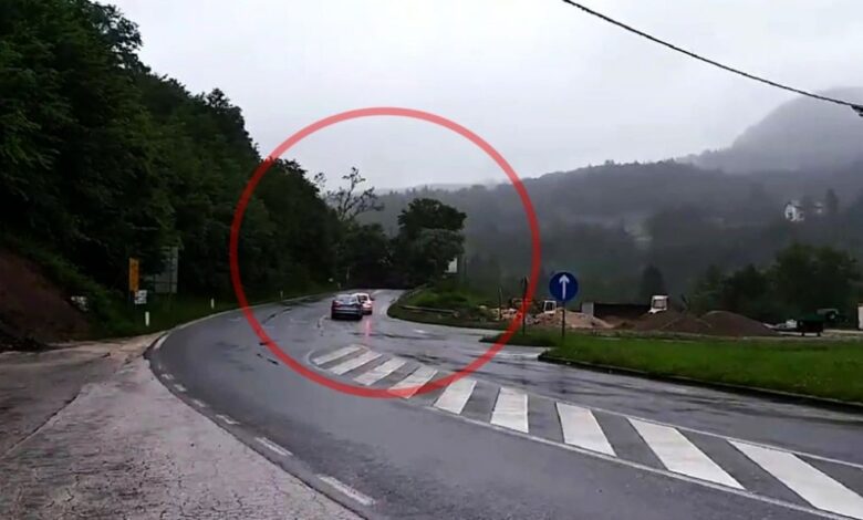 Trenutak zasipanja saobraćajnice je snimljen, a srećom u tom trenutku na mjestu odrona nije bilo vozila ni pješaka.