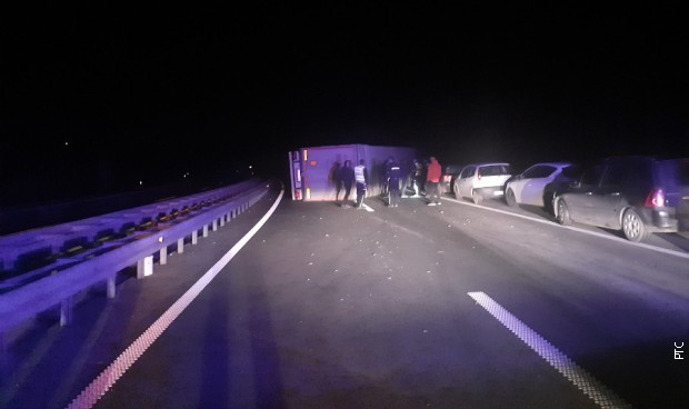 Kamion je bio pun teškog tovara, a prevrnuo se i poprečio preko sve tri trake auto-puta pod nerazjašnjenim okolnostima.