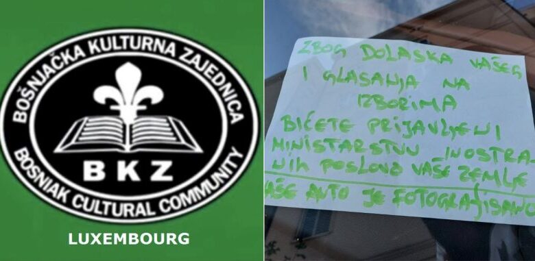 Bošnjačka kulturna zajednica Luksemburg oštro osuđuje pisane prijeteće poruke koje su upućene članu Odbora BKZ-Luksemburg za vrijeme njegovog boravka u Baru u Crnoj Gori u povodu izbora, kao i materijalna šteta koja je pričinjena na njegovom automobilu.