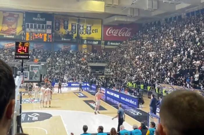 Navijači Partizana u košarkaškom derbiju protiv Crvene zvezde pružili su veliku podršku Rusiji koja provodi agresiju nad Ukrajinom.