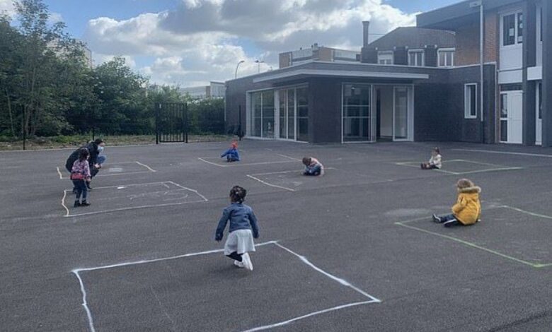Glasnogovornik Ministarstva obrazovanja Francuske rekao je da ne postoje specifične instrukcije o crtanju kvadrata kako bi se djeca razdvojila, no naglasio je kako su svi dobili upute kako se socijalna distanca mora održati te zabraniti da se dijele igračke, školski materijali, ali i – prostor.