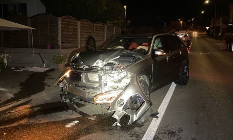 BMW je uništen u udesu, a oštećeni su i fasada kuće, vanjski stolovi picerije, zaštitni podzid… Policija je objavila da je uzrok nesreće vožnja pod utjecajem alkohola i neprilagođena brzina.