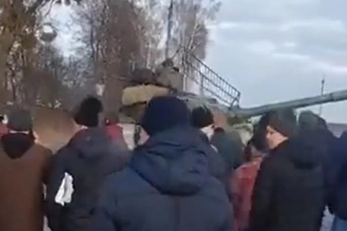 Civili u Ukrajini goloruki spriječili kretanje ruskog tenka (Video)