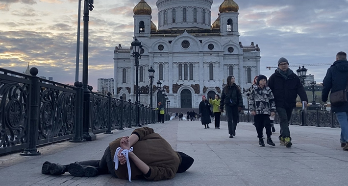 Ruski neovisni portal Holod objavio je fotografije demonstranta koji leži licem prema dolje, a ruke su mu vezane na leđima. U istom položaju ležali su leševi nesretnih Ukrajinaca koji su pronađeni u gradovima blizu Kijeva nakon što su se iz njih povukle ruske snage.