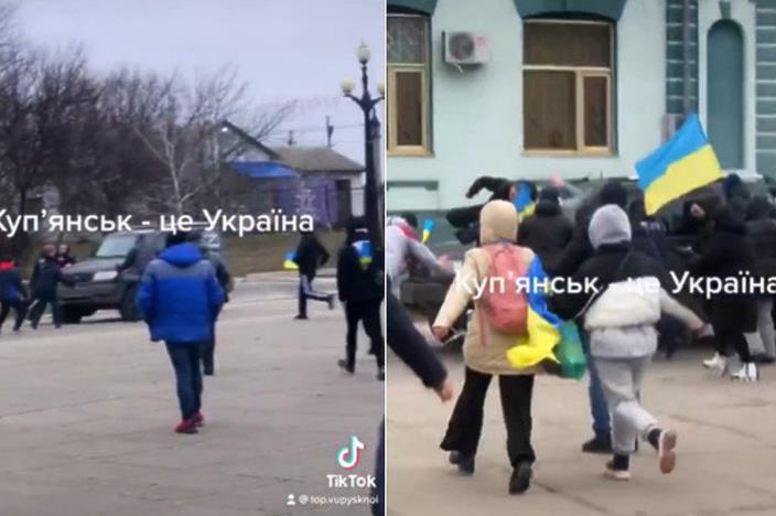 Stanovnici Kupyanska su se okupili u većem broju u centru grada, sa sobom su ponijeli zastave, a jednu veliku podigli su ispred gradske vijećnice. Uz himnu Ukrajine poručili su da se ne slažu sa odlukom gradonačelnika da dozvoli Rusima da uđu u grad, a okupljeni su rastjerani dimnim bombama.